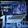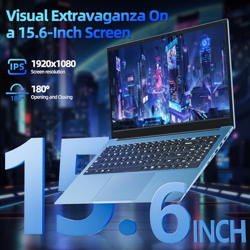 Portátil con pantalla de 15,6 pulgadas: el portátil de 15,6 pulgadas cuenta con una amplia pantalla Full HD de 1920 x 1080, que ofrece una claridad impresionante y colores vibrantes. Las computadoras portátiles de pantalla grande permiten una inmersión completa mientras se dedican a tareas de productividad, miran películas o crean presentaciones. La bisagra de 180° de la pantalla permite ángulos de visión flexibles, por lo que puedes compartir contenido fácilmente con amigos y colegas o ajustar tu vista para la mejor experiencia