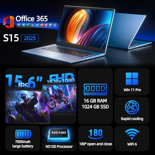 Especificaciones: SGIN Computadoras portátiles de 15.6 pulgadas, 16 GB de RAM 1024 GB SSD, computadoras portátiles con Celeron N5100 Quad-Core, portátil Win 11 Home, 8000 mAh, WiFi, ángulo abierto de 180°, USB