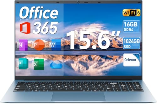 SGIN Computadoras portátiles de 15.6 pulgadas, 16 GB de RAM 1024 GB SSD, computadoras portátiles con Celeron N5100 Quad-Core, portátil Win 11 Home, 8000 mAh, WiFi, ángulo abierto de 180°, USB