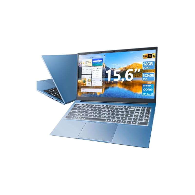 Especificaciones: SGIN Portátil FHD de 15,6 pulgadas, 16 GB de RAM, SSD de 1 TB, Core i3-10100Y hasta 3,9 GHz, WiFi, Bluetooth 5.2, teclado retroiluminado, Win 11, batería de 6 horas