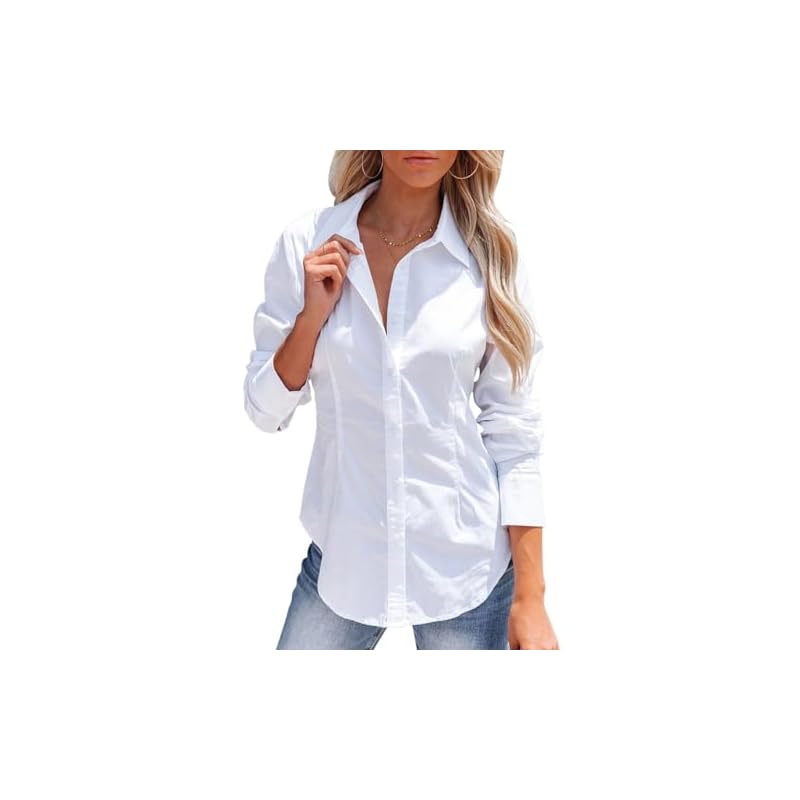 Especificaciones: siliteelon – Camisas de vestir de manga larga con botones para mujer, sin arrugas, cuello para trabajo, oficina, unicolor, blusas con corsé