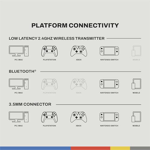 Compatibilidad multiplataforma. Se conecta a Xbox, PlayStation, Nintendo Switch, PC y dispositivos móviles. El transmisor USB-A de baja latencia incluido permite la conectividad inalámbrica a Xbox, PlayStation, Nintendo Switch y PC, lo que te da una transmisión de audio inalámbrica rápida de 25 ms para que puedas escuchar cada sonido sin demora.