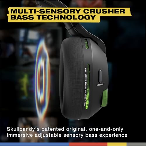 Skullcandy Crusher PLYR 720 – Auriculares inalámbricos para juegos, máxima inmersión y comodidad, audio espacial THX, graves multisensibles, micrófono extraíble, Xbox, PC, PlayStation, transmisor