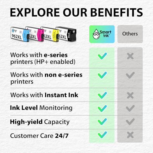Experimente la impresión de siguiente nivel con el cartucho Smart Ink Remanufactureed 962 XL, totalmente compatible con impresoras de la serie e, impresoras HP + y HP Instant Ink activadas.