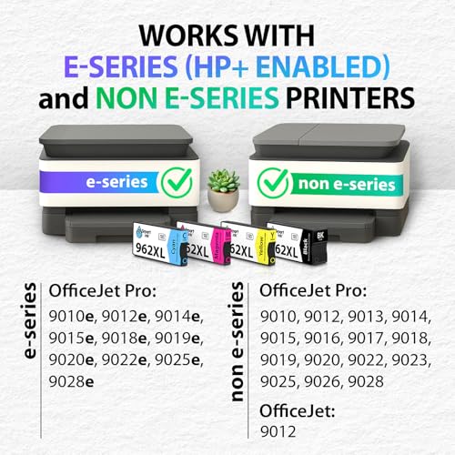 Especificaciones: Smart Ink Cartuchos de tinta remanufacturados de repuesto para HP 962XL 962 XL Combo Pack (962XL negro, cian, magenta, amarillo) para usar con OfficeJet Pro 9015e 9018e 9025e 9012e 9015 9010 9012 9018