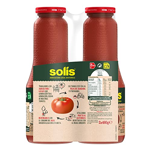Especificaciones: SOLÍS Tomate Frito Clásico Bipack Frasco Cristal – Sin Gluten – 2 x 460g