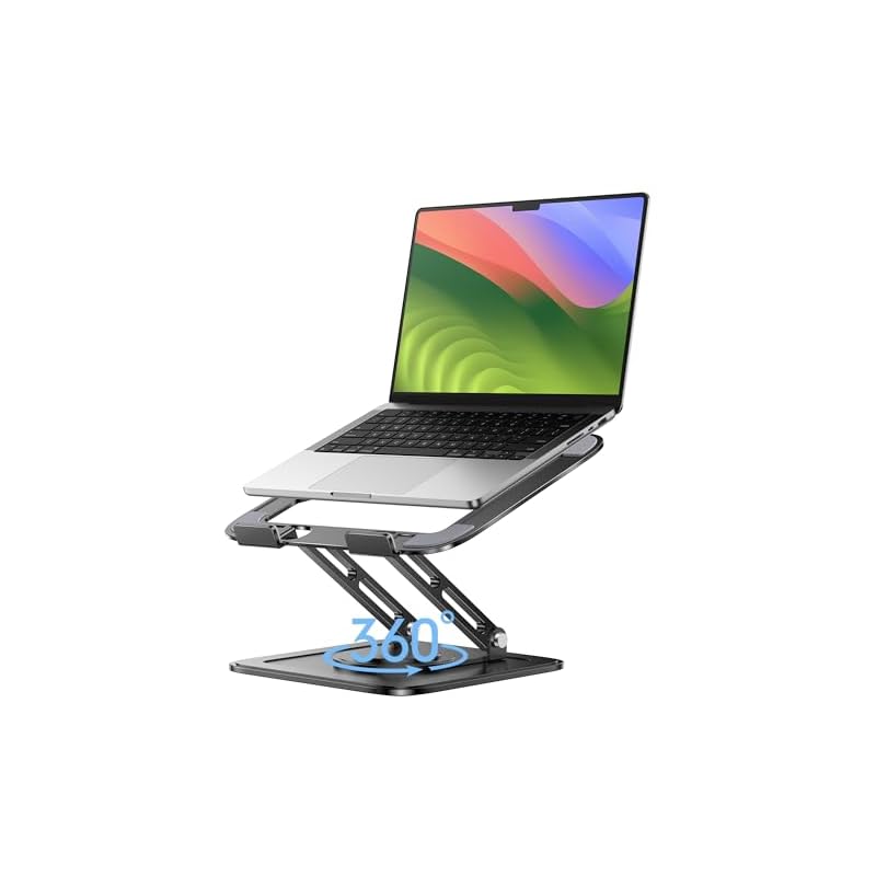 Soporte ajustable para laptop, soporte para computadora con base giratoria de 360°, soporte ergonómico para computadora portátil para escritorio, escritorio plegable para computadora portátil