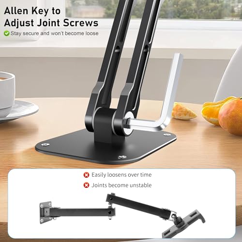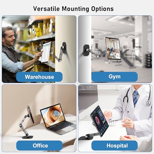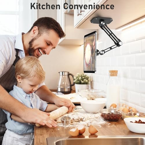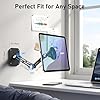 Montaje multifuncional: soporte de pared para iPad para cada espacio. Desde la cocina hasta el baño, este soporte de pared para tablet se adapta a cualquier lugar. Un soporte de pared de aluminio plegable y que ahorra espacio, es perfecto para cocinar con manos libres, presentaciones o entretenimiento sobre la marcha.