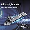 Especificaciones: SSK Unidad USB de 1 TB, SSD externo rápido 550 MB/s 2 en 1 de doble unidad tipo C+ A USB3.2 Gen2 de estado sólido ThumbDrive SSD-Stick para iPhone 15/16/PS4/teléfono Android/tableta/Windows/Mac