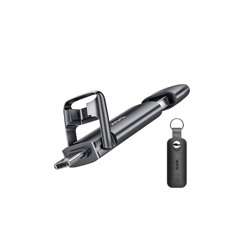 Plug and Play: la unidad dual SSK admite plug and play, sin ninguna instalación de software. Al mismo tiempo, la memoria USB SSD puede ampliar la capacidad de teléfonos y computadoras. Es conveniente para todos usar el teléfono móvil para leer directamente la unidad de memoria USB para compartir archivos, transmisión de datos y reproducción de video cuando trabaja o estudia.