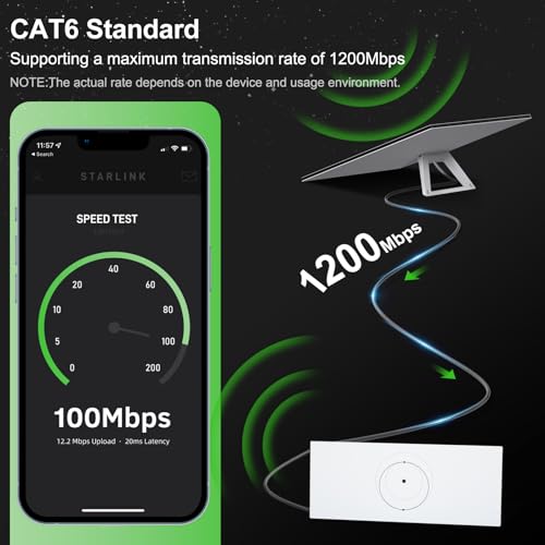 Transmisión de alta velocidad: el repuesto para cable Starlink V3 está hecho de cable 26AWG de alta calidad y se produce de acuerdo con los estándares originales con un ancho de banda de 1200 Mpbs, lo que puede lograr una transmisión de datos suave sin demora.