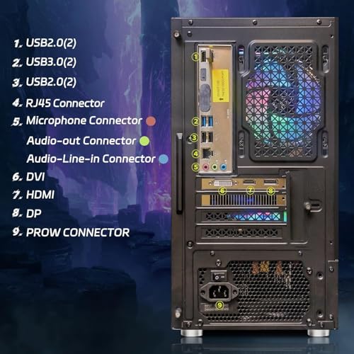 Conectividad de escritorio para juegos: esta PC para juegos viene con ventilador RGB x 5 | 1 RJ-45 | Wi-Fi 6 | Bluetooth 5.0 | Gráficos: tarjeta de video AMD Radeon RX 580 16G GDDR5 | HDMI | DisplayPort | DVI