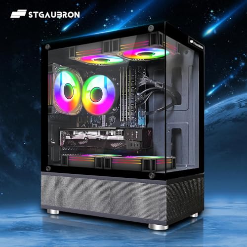 STGAubron Computadora de escritorio para videojuegos, Radeon RX 580 16G, Intel 10ª generación G5905 3.5G, 16G RAM, 512G SSD, WiFi 6, BT 5.0, ventilador RGB x 5, Windows 11 Home