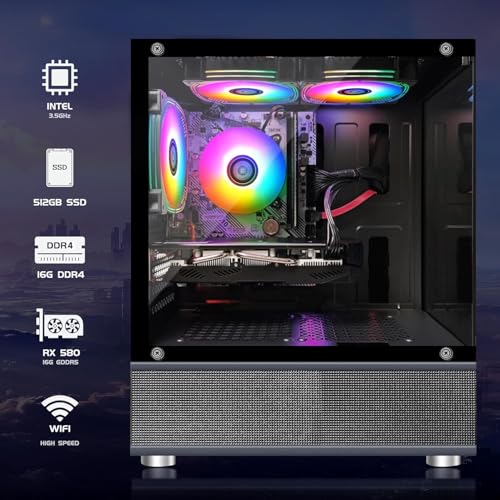 Especificaciones: STGAubron Computadora de escritorio para videojuegos, Radeon RX 580 16G, Intel 10ª generación G5905 3.5G, 16G RAM, 512G SSD, WiFi 6, BT 5.0, ventilador RGB x 5, Windows 11 Home