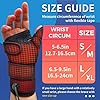DISEÑOS PERSONALIZADOS: 2 tamaños disponibles, cubre el tamaño de la muñeca de la mayoría de los adultos: S/M para 5-6.5 pulgadas, L/XL para 6.5-9.5 pulgadas. Gamas de circunferencia de palma recomendadas para cada tamaño: S/M: circunferencia de la palma de 18 a 9.1 in; L/XL: circunferencia de la palma de 23 a 11.0 in. La abrazadera para el pulgar con un tamaño adecuado proporciona un ajuste cómodo, lo que podría proporcionar una mejor eficiencia de calentamiento y curación para el dolor de manos.