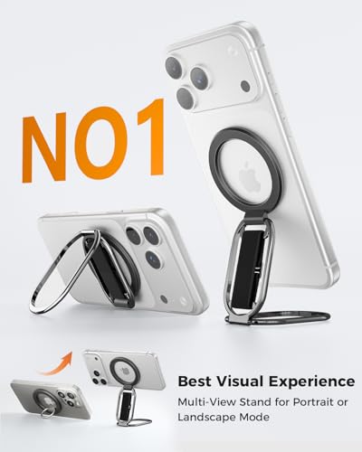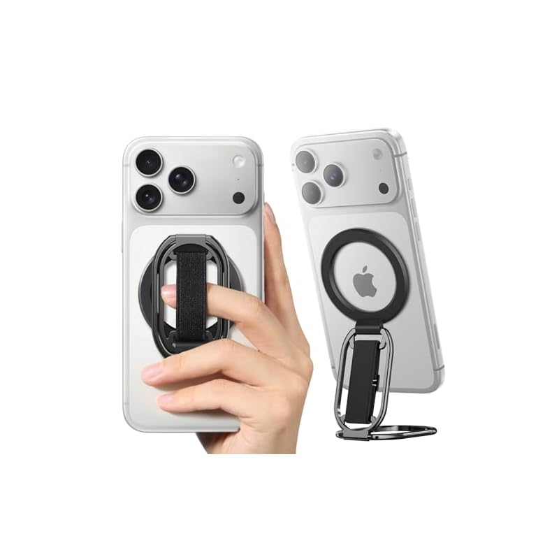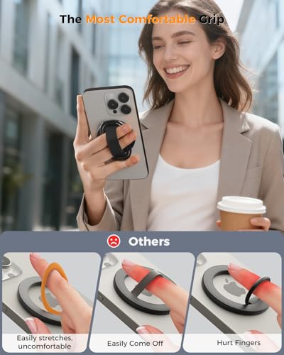 SUPERONE Soporte MagSafe para teléfono MagSafe compatible con Mag Safe Finger Loop, correa de soporte de anillo de teléfono 4 en 1 para iPhone 17/16/15/14/13/12, negro [versión 2025]