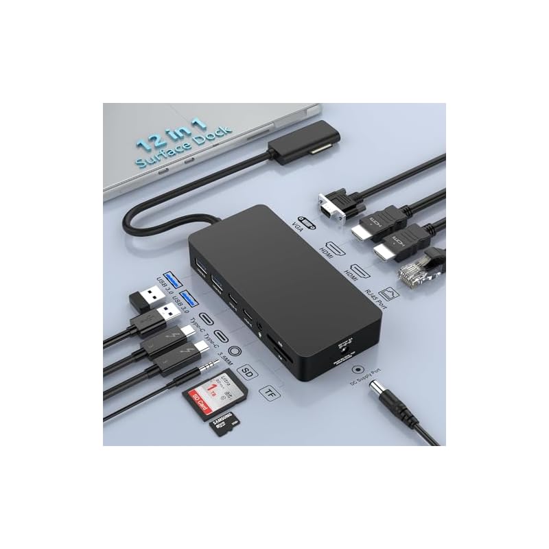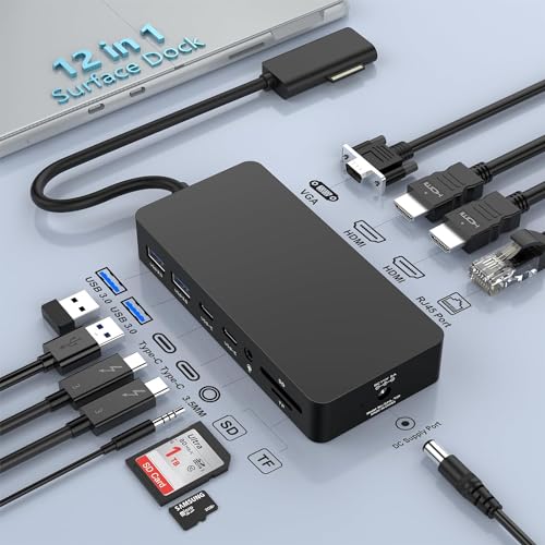 Surface Pro – Estación de acoplamiento Microsoft – 1 año de garantía – 12 en 1 Surface Triple Displays Dual 4K HDMI+VGA Dock, Surface Docks para Surface Pro 11/10/9/8/X/7/6, Surface Laptop 7/6/5/4/3