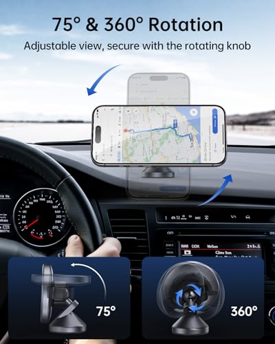 SYNCWIRE Soporte magnético para teléfono MagSafe para automóvil, rotación de 360 grados para tablero de automóvil, imanes fuertes, soporte de teléfono compatible con iPhone 16 Pro Max 15 14 13 12,