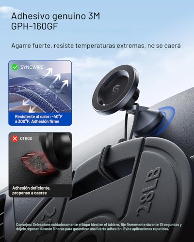 Especificaciones: SYNCWIRE Soporte magnético para teléfono MagSafe para automóvil, rotación de 360 grados para tablero de automóvil, imanes fuertes, soporte de teléfono compatible con iPhone 16 Pro Max 15 14 13 12,