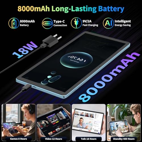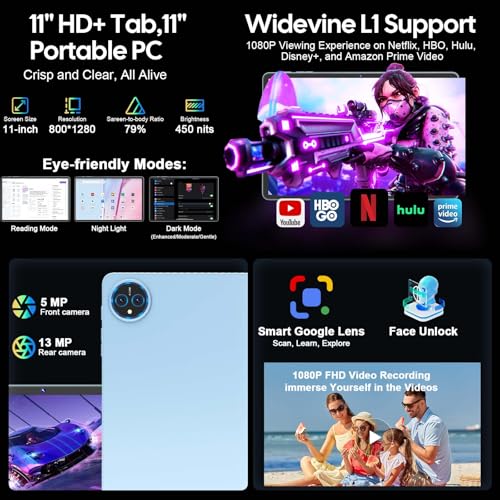 Pantalla FHD+ de 11 pulgadas con actualización de 90 Hz + L1 amplia: la Relndoo P80 Pro cuenta con una impresionante pantalla de tableta de 11 pulgadas con frecuencia de actualización de 90 Hz, que ofrece imágenes suaves y reducción de la fatiga ocular. Certificado con Widevine L1, es compatible con YouTube y Prime Video en 1080P. Ya sea que estés viendo programas o trabajando en tareas creativas, esta tableta Android de 11 pulgadas ofrece claridad cinematográfica y vitalidad de color en cada fotograma