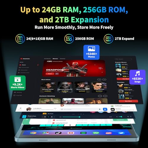 24 (6+18) GB de RAM + 256 GB de ROM + 2 TB de expansión: con hasta 24 GB de RAM (6 GB de base + 18 GB expandible), esta tableta Android 15 ofrece un rendimiento suave para multitareas, juegos o transmisión. El almacenamiento UFS de 256 GB se puede ampliar a través de una tarjeta TF hasta 2 TB. Ya sea que cambie entre aplicaciones o maneje cargas de trabajo pesadas, esta tableta de 11 pulgadas mantiene las cosas funcionando sin esfuerzo. La tableta certificada por GMS garantiza descargas de aplicaciones fluidas y una experiencia sin retrasos