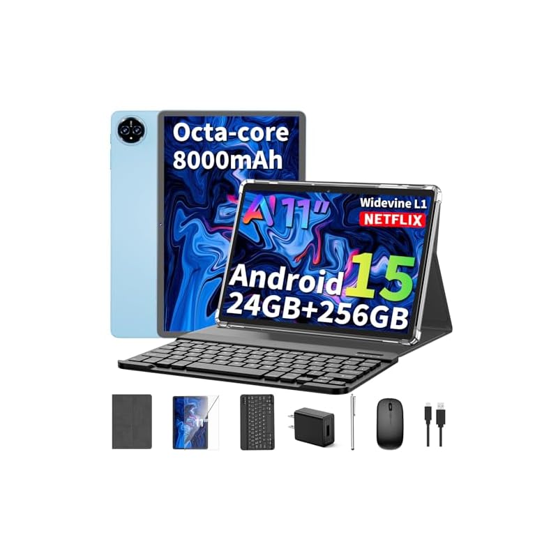 Tableta 2025 de 11 pulgadas, Android 15 tabletas con teclado, 24 GB+256 GB+2 TB Expand, Octa-Core, 8000 mAh, Tablet PC con WiFi 5G/2.4G, BT5.0, GMS, GPS, tabletas 2 en 1 con funda, mouse, lápiz óptico