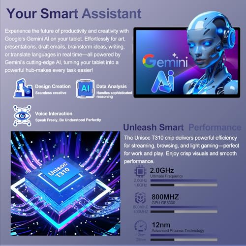 【Rendimiento inigualable y asistente inteligente Gemini AI 2.0】: la tableta ZIOVO se abacora a una actualización revolucionaria, con un procesador de alto rendimiento de 2.0 GHz y sistema operativo Android 15 (con mayor seguridad/privacidad y expulsión de anuncios). Experimente lanzamientos de aplicaciones ultrarrápidos, controles táctiles ultra sensibles y estabilidad del sistema sólida, ofreciendo un rendimiento destruido a un precio que supera a las tabletas premium que cuestan miles. Gemini AI 2.0 se destaca: asistente inteligente 24/7 con control de voz, traducción en tiempo real y resumen de IA. Chat de IA para resolver problemas con una eficiencia notable.