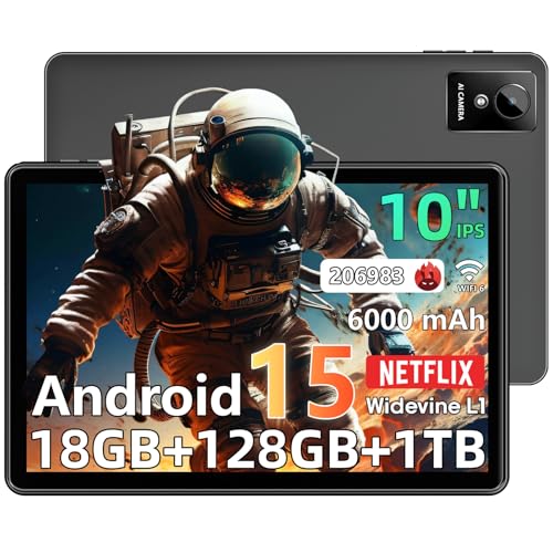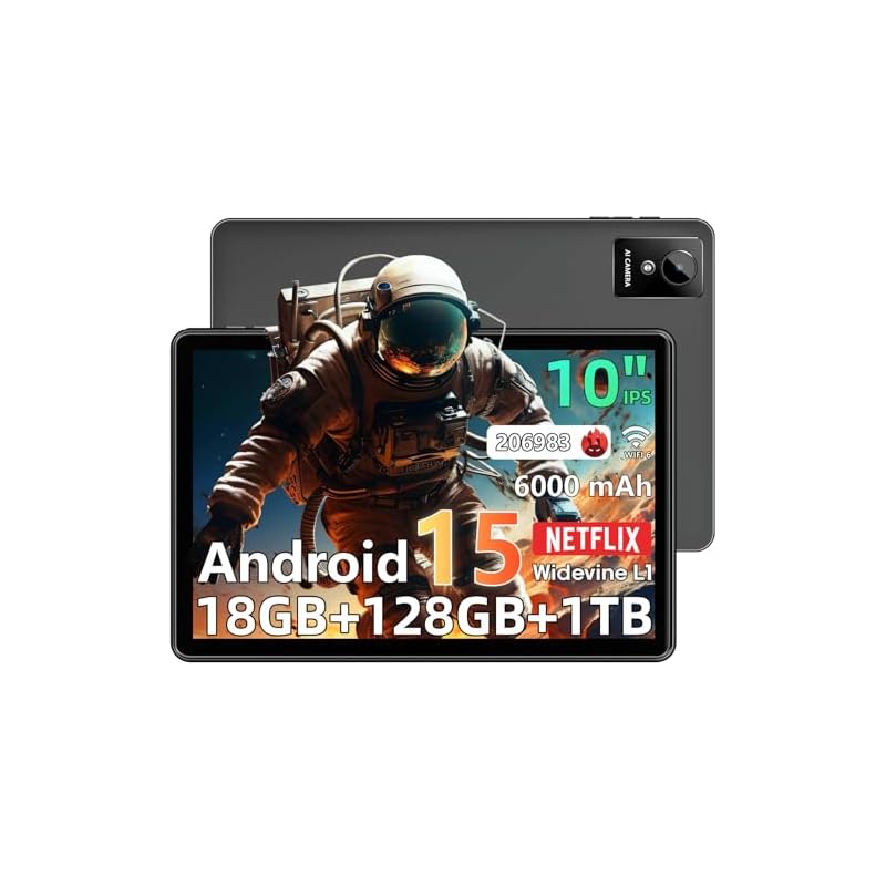 Tableta Android 15 de 10 pulgadas, 18GB RAM 128GB ROM 1TB Expand, procesador Octa-Core, 1280×800 IPS Widevine L1, WiFi 6, cámara dual de 8MP+5MP, BT5.4, 6000mAh, GPS, carga rápida tipo C