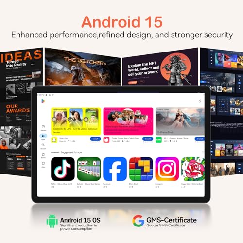 Android 15 con certificación GMS: la última tableta 2025 está equipada con el sistema operativo Android 15 que ofrece una experiencia segura y sin anuncios con controles de privacidad mejorados y permisos de aplicaciones. Pre-certificado con Google Mobile Services (GMS), accede a tus aplicaciones favoritas como YouTube, Netflix y Spotify instantáneamente a través de Google Play Store preinstalado. El sistema está totalmente adaptado a Google, Chrome sincroniza todo por ti. Perfectamente diseñado para aquellos que viven en el mundo de Google.