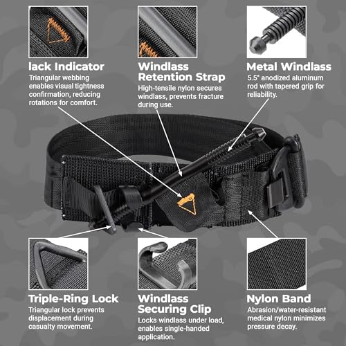 Duradero y resistente: este torniquete está hecho de materiales de alta resistencia, resistentes a la abrasión, incluyendo tela de nailon y barras de torsión de metal de aleación de aluminio, lo que lo hace extremadamente resistente y capaz de soportar los entornos más duros.