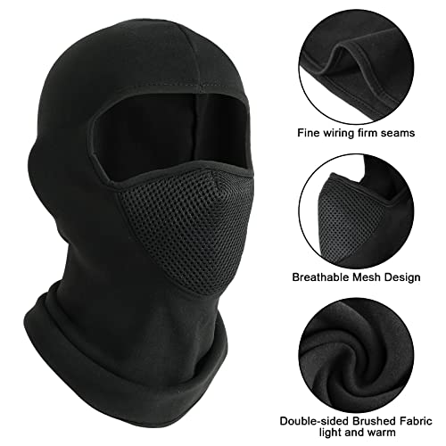 TAGVO Cálido pasamontañas con máscara de Cara Completa con Malla Transpirable, Calentador de Cuello de Lana de Invierno a Prueba de Viento, Gorro de Casco – Tamaño elástico Universal