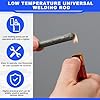 Material de calidad: este producto está fabricado con polvo de estaño de calidad y polvo de aluminio, lo que garantiza la longevidad y el rendimiento de la varilla de soldadura; el disolvente y el flujo presentes en estas varillas de soldadura a baja temperatura garantizan un proceso de soldadura suave, por lo que es la herramienta ideal para tus necesidades de soldadura; puede haber un olor cuando lo usas, por lo que puedes usar una máscara