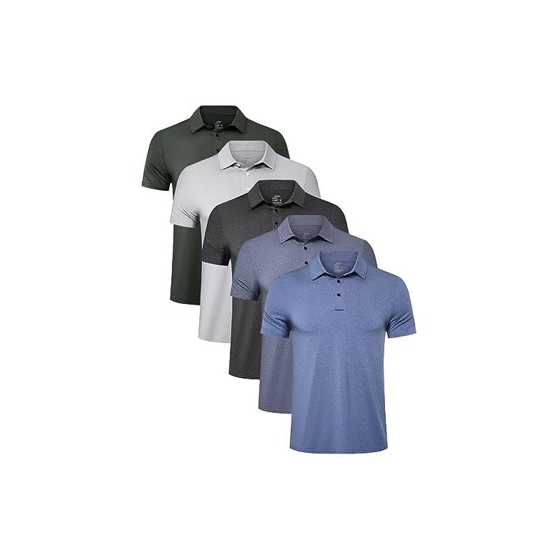 Especificaciones: TELALEO Paquete de 4/5 camisas polo para hombre, secado rápido, manga corta, para golf, rendimiento que absorbe la humedad, entrenamiento casual