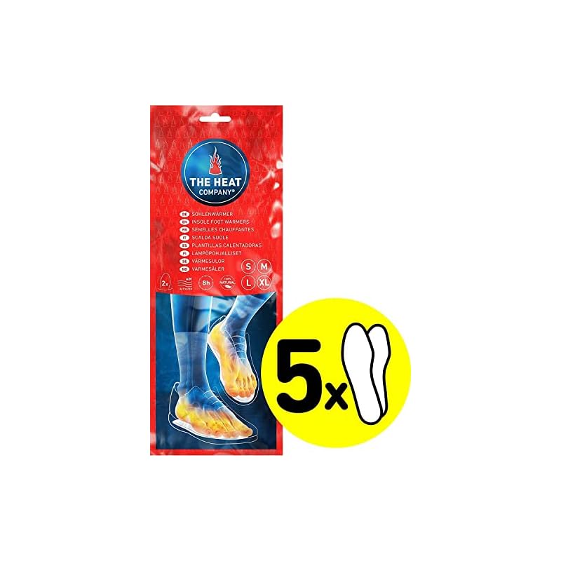 THE HEAT COMPANY Plantillas Calentadoras – 5, 10 o 30 Pares – Extra CÁLIDO – Calentadores Pies – 8 Horas de pies Calientes – Calor instantáneo – Activado por Aire – Puro Natural – Small, Medium, Large, XL