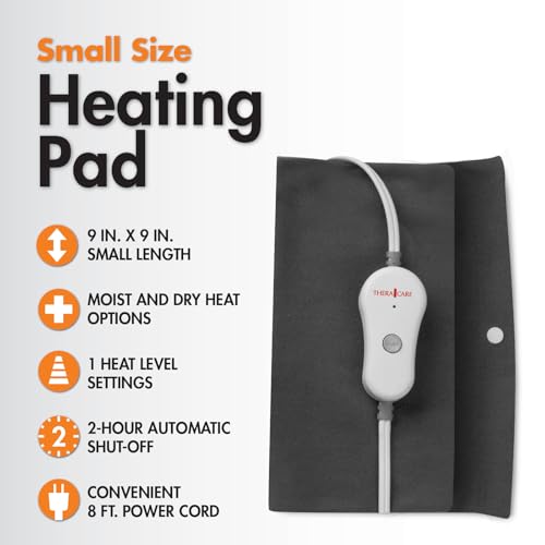 TheraCare – Almohadilla térmica de tamaño pequeño | Calor húmedo y seco | Un ajuste de calor | Músculos doloridos | Alivio cálido calmante | Tamaño personal 9 x 9 pulgadas | Seguro y apagado