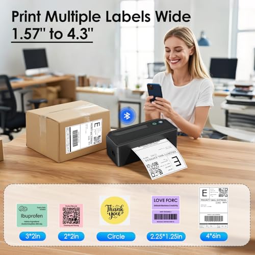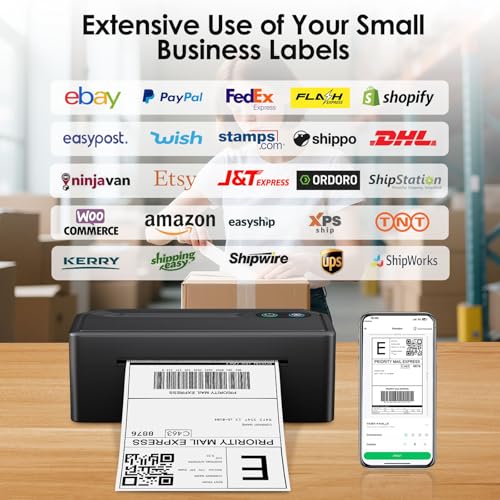 Thermal Shipping Label Printer, Bluetooth 4×6 Label Printer for Small Business Office Home, Compatible with Android, iOS, Windows, Mac, Chrome, Widely Used for Amazon,Ebay,USPS,UPS,Etsy,Shopify