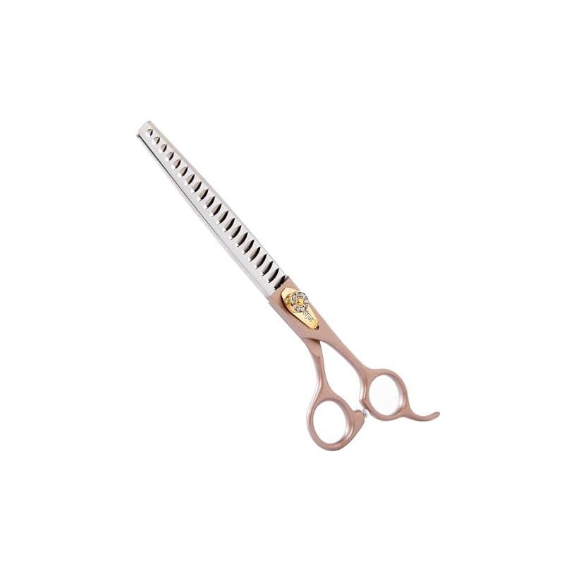 Especificaciones: Tijeras profesionales de aseo para perros, color oro rosa 440C, de acero inoxidable rectas, curvas, para servicios de aseo de mascotas, perros y gatos (chunker, 7.5 pulgadas)