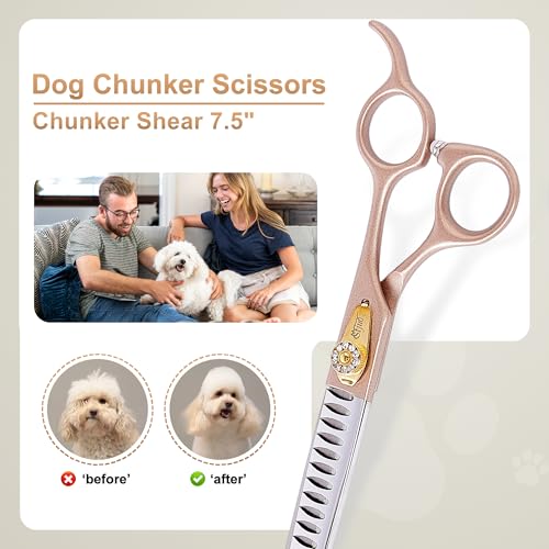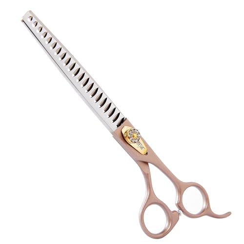 Tijeras profesionales de aseo para perros, color oro rosa 440C, de acero inoxidable rectas, curvas, para servicios de aseo de mascotas, perros y gatos (chunker, 7.5 pulgadas)