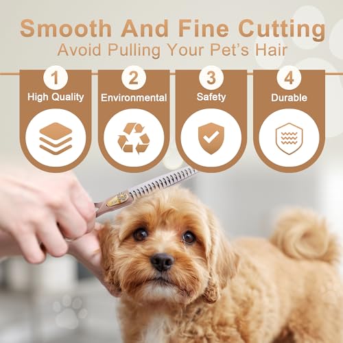 Material: las tijeras para perros están hechas de acero inoxidable recubierto de titanio JP 440C, que es lo suficientemente afilado sin tirar del pelo