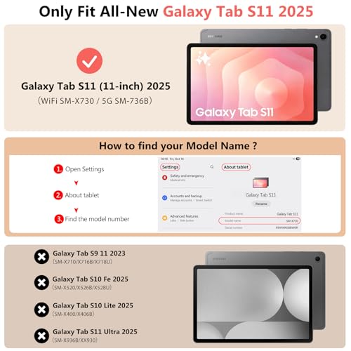 Compatibilidad: TiMOVO especialmente diseñado para Samsung Galaxy Tab S11 de 11 pulgadas 2025 SM-X730/X736B. NOTA: NO para ningún otro dispositivo modelo de tableta. Comprueba tu tablet para encontrar el número de modelo