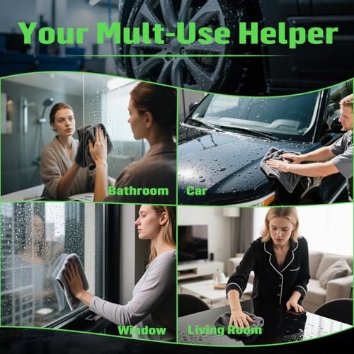 Construcción de microfibra de alta calidad para resultados sin rayas: con una construcción de microfibra de alta densidad, la toalla de secado brillante XXL para ducha es perfecta para recoger suciedad, humedad y mugre. El diseño de doble cara ofrece un lado para limpiar y un lado de malla para pulir, asegurando un acabado sin rayas, lo que la convierte en la toalla de secado de toallitas de baño brillantes ideal para limpiar superficies de vidrio o detallar tu automóvil.