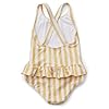 Traje de baño de una pieza para niñas pequeñas, traje de baño con espalda cruzada y espalda descubierta, ballena, delfín, tiburón, traje de baño con volantes en el trasero, UPF50+
