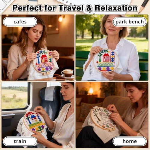 Diseño portátil para todos los escenarios: ligero y compacto, este juego de bordado de libro de puntadas se desliza en tu bolso para coser en viajes, en cafés o durante los desplazamientos. Convierte los momentos ociosos en alegres aventuras de libros de muestras de bordados