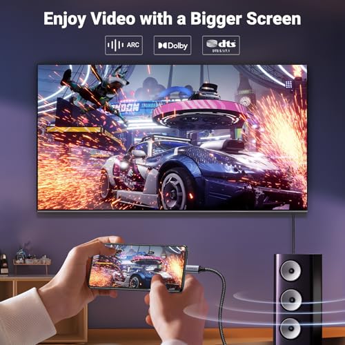 Resolución mejorada de 8K, disfruta de una fiesta visual: *Nota: la serie MacBook soporta 4K a 240Hz (se necesitan Apple Silicon M3 y M4, M1 y M2 solo son compatibles hasta 4K a 144 HZ) al máximo cuando se conecta a cualquier cable USBC a HDMI debido a su propia limitación de hardware. Este cable UGREEN 8K Thunderbolt a HDMI soporta alta resolución de 8K @60Hz y 4K a 240Hz. También es compatible con HDCP2.3, Dynamic HDR y ARC. Paso de audio perfecto para audio sin comprimir en Dolby 7.1. Admite alta actualización y resolución, maximizando el rendimiento de la tarjeta gráfica y el monitor durante la edición de juegos o video