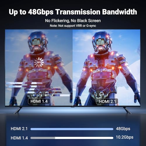 Alta velocidad de 48Gbps, mejora de la transmisión: HDMI 2.1 presenta un aumento significativo en la velocidad de transmisión sobre HDMI 2.0 y 1.4. El cable USB-C a HDMI transmite datos a velocidades de hasta 48Gbps y 240Hz y es compatible con HDMI 2.0, 1.4 anteriores. Con la mejor transmisión de señal, puede garantizar una increíble calidad de sonido e imagen, y un parpadeo final a la pantalla. *Nota: La transmisión es unidireccional, solo desde USB-C a HDMI