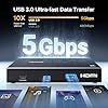 Con 4 puertos USB 3.0: este conmutador KVM USB tiene 4 puertos USB 3.0 (3 USB-A+1 USB-C) para compartir unidades flash USB, impresoras, discos duros, disco U, cámara web y otros dispositivos USB. USB 3.0 ofrece velocidades de transferencia de datos de hasta 5 Gbps, mientras que USB 2.0 es de solo 480 Mbps. Permite una transferencia más rápida de archivos e imágenes, y reduce el desorden y mejora la eficiencia