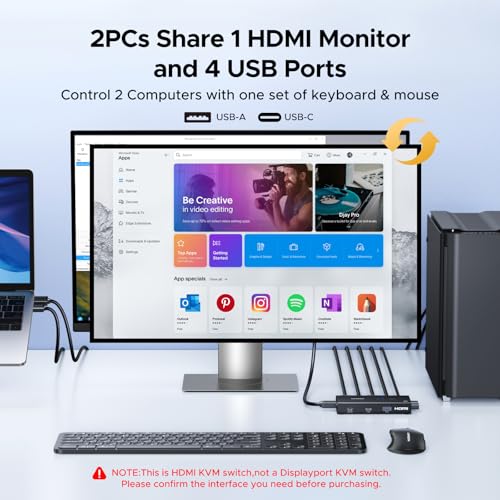 Conmutador KVM 1 Monitores 2 Computadoras: Este conmutador kvm permite que 2 computadoras compartan 1 monitor y 4 dispositivos USB 3.0, como un teclado configurado, ratón, discos duros, disco U e impresora. No es solo un interruptor de teclado y mouse, sino también un interruptor HDMI. Puede cambiar fácilmente entre dos hosts, lo que mantiene su espacio de trabajo ordenado y ayuda a maximizar la productividad. (SÓLO es compatible con un monitor HDMI)