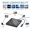Amplia compatibilidad: unidad externa de CD/DVD para computadora portátil, escritorio, Linux OS Apple Mac, MacBook Pro. grabadora de cd reproductor de dvd compatible con Windows 10/8.1/7/XP/Vista, Linux, todas las versiones de Mac OS. Ideal para Apple, Dell / Sony / Samsung / ASUS / Acer / HP y otras marcas de portátiles, Ultrabook, PC, escritorio sin hardware de unidad. No apto para cromo, TV, coche, tableta