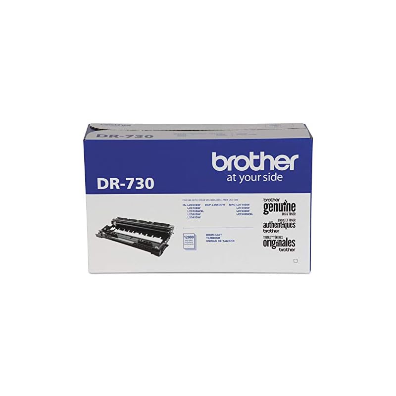 Especificaciones: Unidad de tambor original Brother DR730, integración sin costuras, rendimiento de hasta 12,000 páginas, negro (unidad de tambor, no tóner)