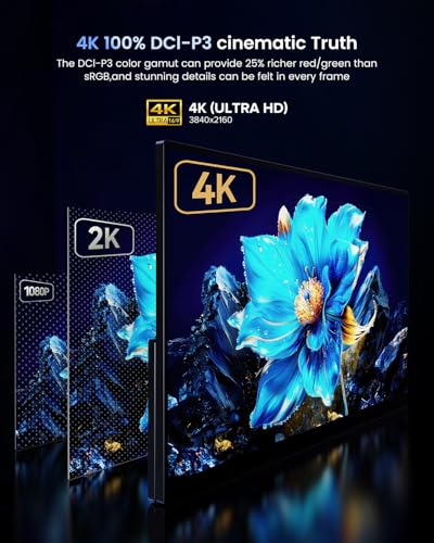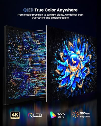 【QLED True Color en cualquier lugar】Este monitor portátil 4K QLED ofrece precisión de color cinematográfica y rendimiento HDR vívido con una amplia gama de colores 100% DCI-P3, brillo de 500 nits y una relación de contraste de 2000:1. Disfruta de rojos más ricos, negros más profundos y imágenes realistas, perfecto para creadores, diseñadores, jugadores y entretenimiento inmersivo en cualquier lugar.
